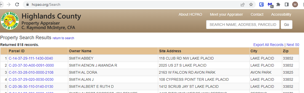 Property Records Search (Highlands)