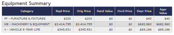 Display Option with Equipment Summary